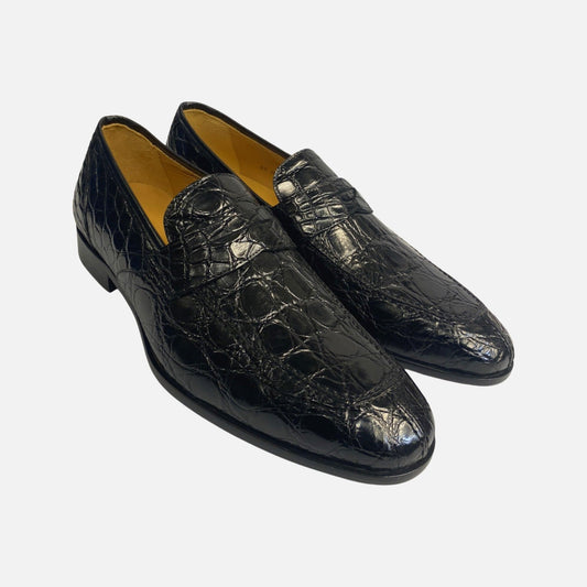 Mezlan Black Genuine Crocodile Penny Loafer - (Style 4993-C)