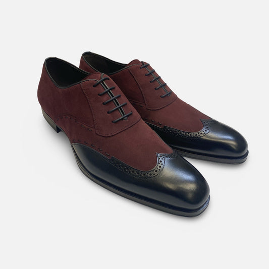 Mezlan Paganini Black/Grape Wingtip Suede and Leather Shoe