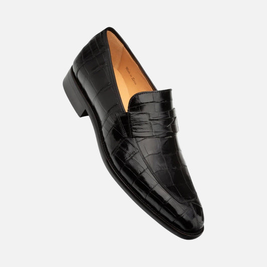 Mezlan Piccolo 'Black' Alligator Penny Loafer - Handcrafted in Spain