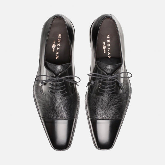 Soka Black Deerskin and Calfskin Cap-toe Oxfords by Mezlan