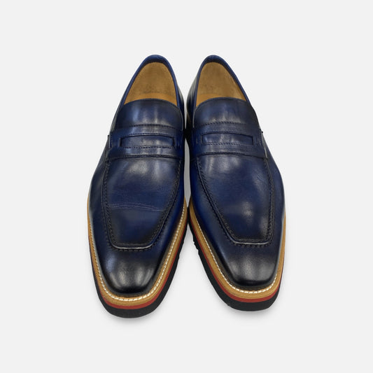 Jose Real Italian Mens Blue Ribbed Soft Bottom Loafer Shoes