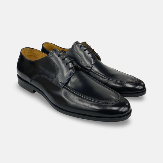 Calzoleria Toscana Navy Blue Derby “Tiglio” – Handcrafted and Hand-Painted Italian Leather Shoes