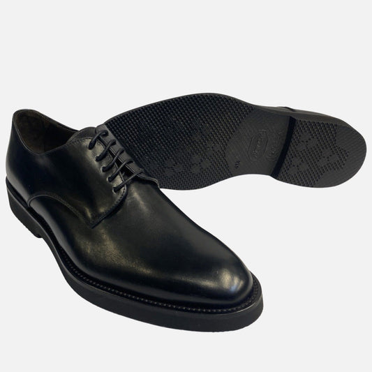 Clearance | La Ferra Black Italian Plain Toe Shoe - Vibram Outsole