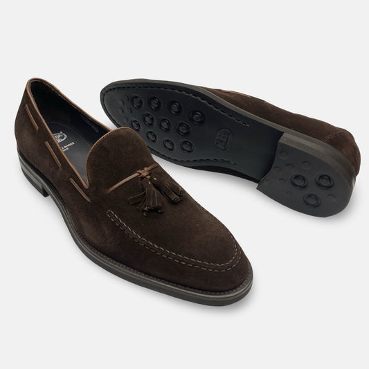 Calzoleria Toscana Tassel Loafer Suede Brown Italian | Size 47 (US 14)