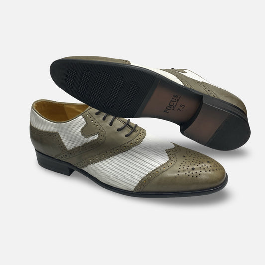 Men's Two tone Gray white spec shoe wingtip brogue | Final Sale