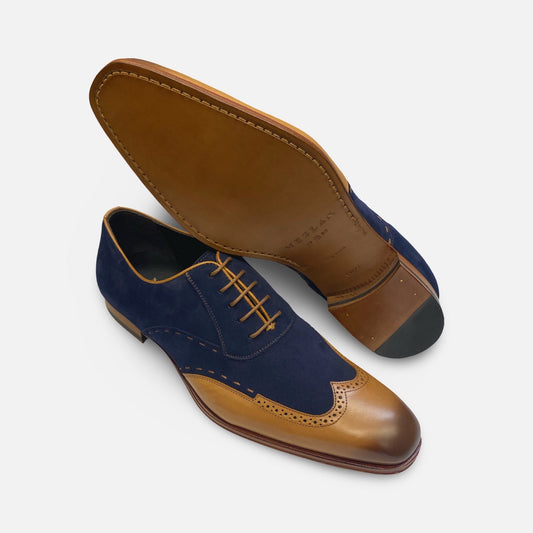 Mezlan Paganini Camel/Blee Wingtip Suede and Leather Shoe