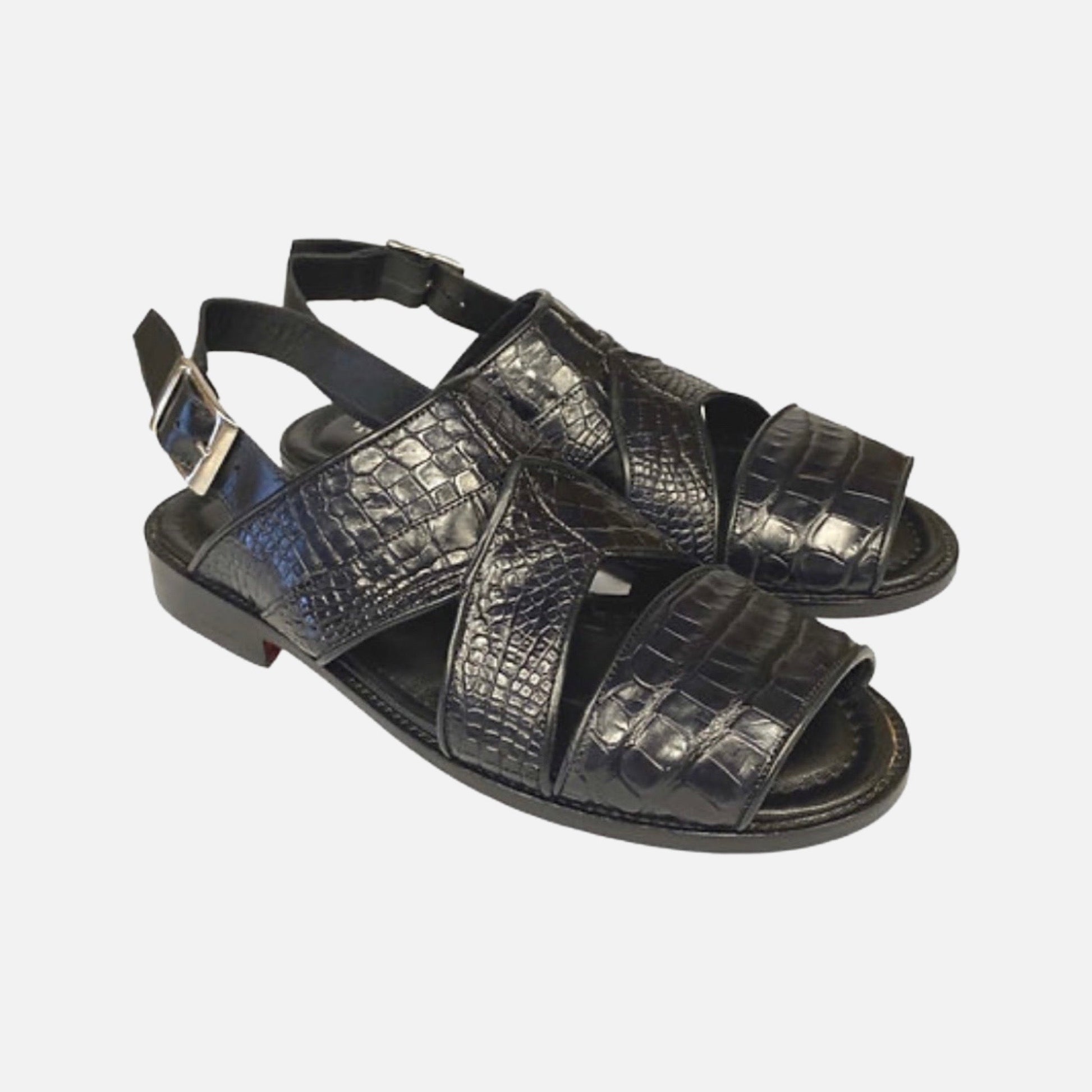 Alligator Black Sandal For Men | Made in Italy