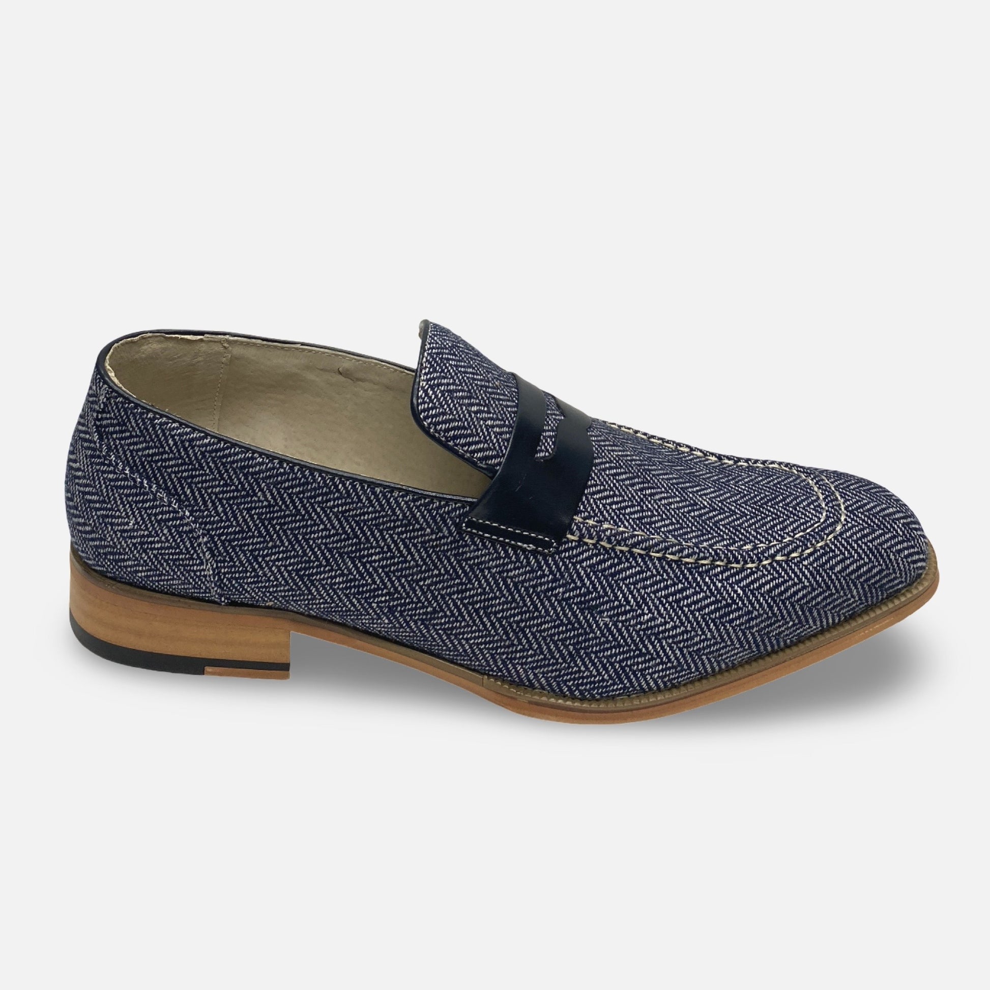 Mens Giovanni Navy Tweed style loafer. Fabric shoe. Size 9.5. Last Pairs.