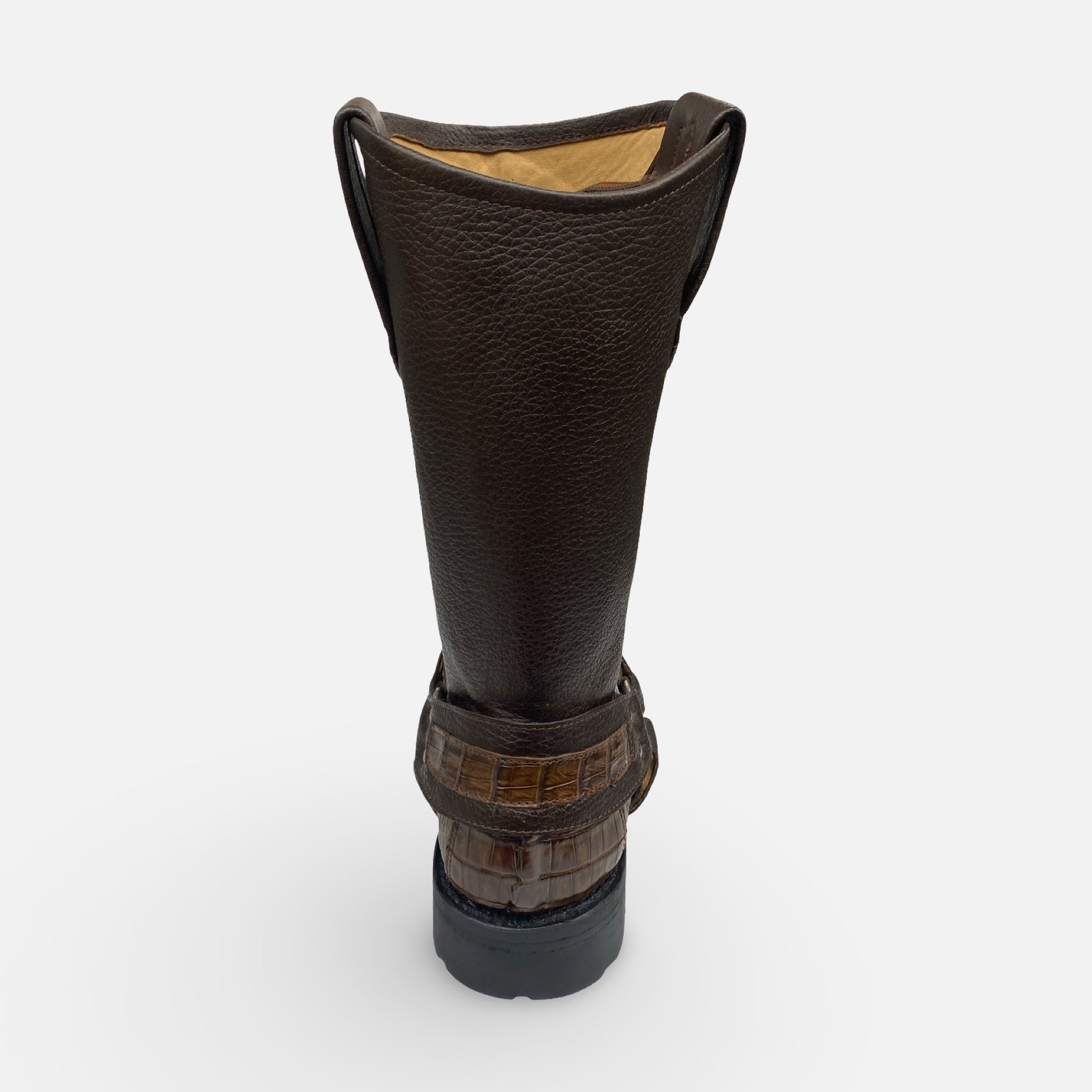 Los Altos Men’s Genuine Crocodile Tail Harness Boot – Brown