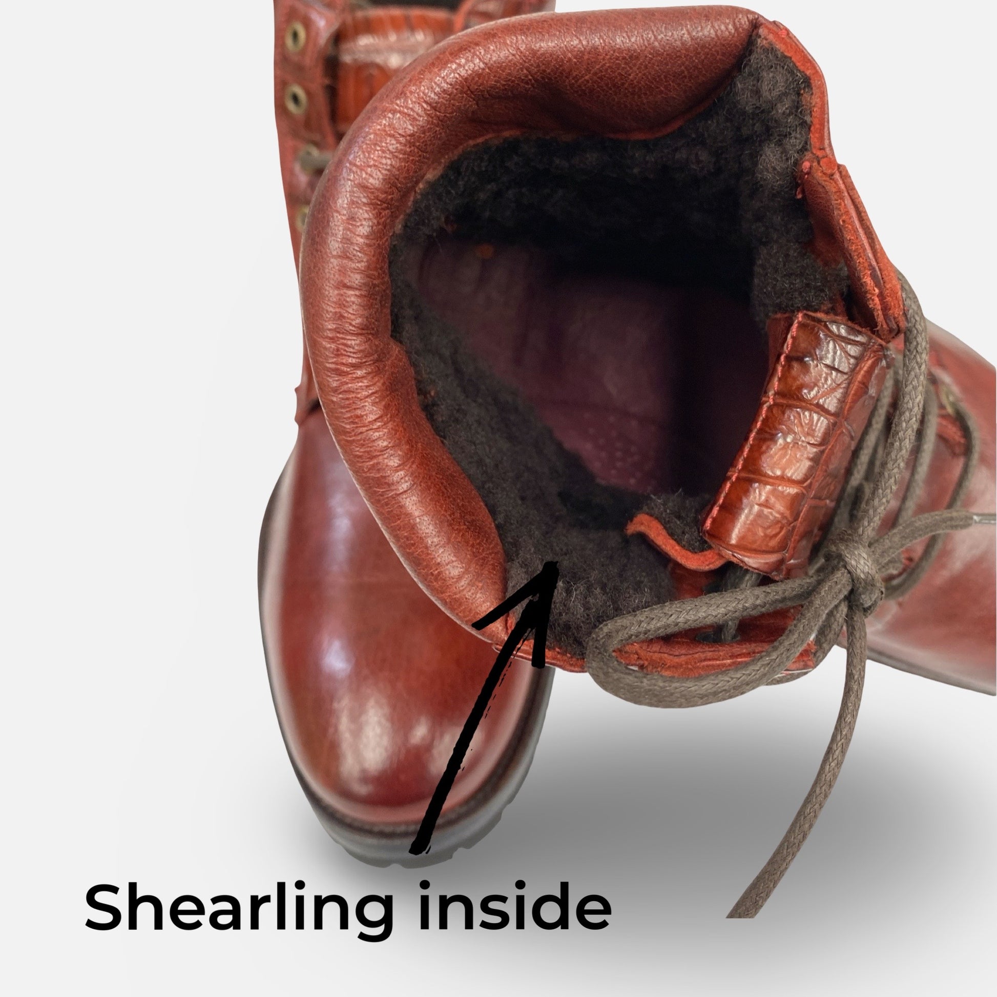 Calzoleria Toscana Cherry Crocodile Trim Shearling Boot – Handmade in Italy